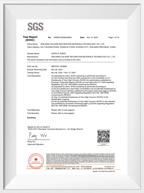 Pretože materiál strieborného akrylového plechu obsahuje malé strieborné záblesky, mala by sa venovať rovnováha medzi efektom flash a presnosťou formovania počas výrobného procesu. Hangzhou Oleg International Trade Co., Ltd optimalizuje vzorec surovín a parametre spracovania, aby sa zabezpečilo, že prísady strieborného blesku sú rovnomerne rozložené v hárku bez toho, aby ovplyvnili výkonnosť hárku. Počas procesu termoformácie a spracovania sa teplota a tlak presne riadia, aby sa zabránilo agregácii alebo posunutiu častíc bleskov striebra v dôsledku nesprávnych podmienok procesu, čím sa zaistilo, že produkt má dobrú presnosť formovania, pričom predstavuje stabilný a elegantný efekt strieborného blesku.