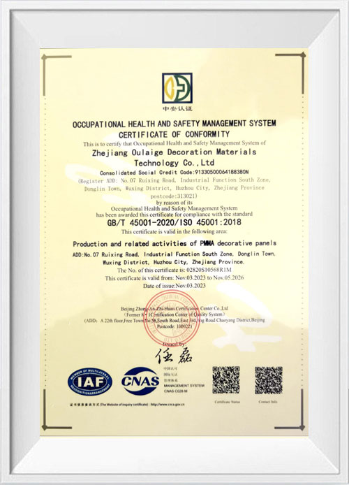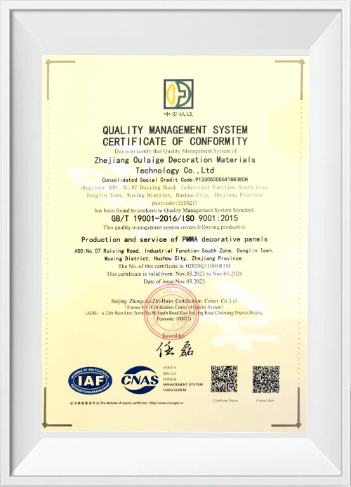Hangzhou Oleg International Trade Co., obsadenie Ltd strieborný akrylový plech Prijíma kontrolu integrácie systému Precision System. Tento pokročilý technický prostriedok hrá kľúčovú úlohu pri zlepšovaní presnosti formovania a kvality povrchu akrylového plechu striebra. Počas výrobného procesu, od prípravy surovín po formovanie konečného produktu, je celý proces pod prísnym monitorovaním systému. Presným reguláciou kľúčových parametrov, ako je teplota, tlak a prietok, sa zabezpečuje stabilita a konzistencia každého akrylového listu striebra počas procesu formovania. Napríklad v horúcom formovaní môže systém presne upraviť teplotu a čas vykurovania podľa hrúbky a veľkosti listu, takže plachta je rovnomerne zahrievaná, čím sa vyhne problémom s deformáciou spôsobenými miestnym prehrievaním alebo nadchnutím a výrazným zlepšením presnosti formovania. V procesoch, ako je extrúzia a karanderovanie, presná kontrola tlaku systému zaisťuje rovnomernosť hrúbky listu a ďalej zlepšuje kvalitu povrchu produktu. Táto presná kontrola integrácie systému zlepšuje nielen účinnosť výroby a dosahuje vysoký výkon, ale čo je dôležitejšie, poskytuje solídnu záruku pre vysokokvalitnú výrobu akrylových listov strieborného, takže jeho kvalita nielen spĺňa, ale dokonca prekračuje štandard kvality produktu GB/T7134-2008.